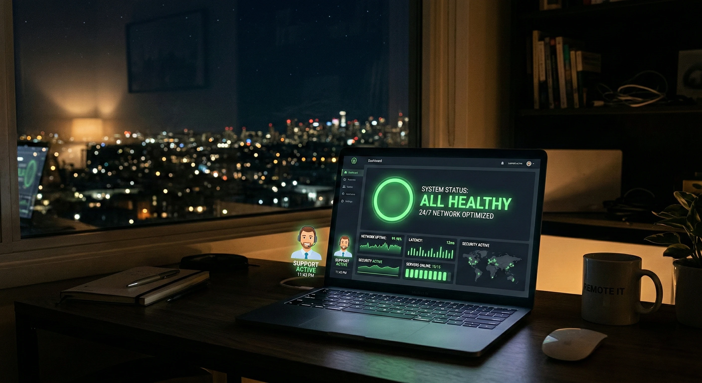 We don't just set it up and leave. We continuously monitor your network's health to provide instant remote troubleshooting and updates.